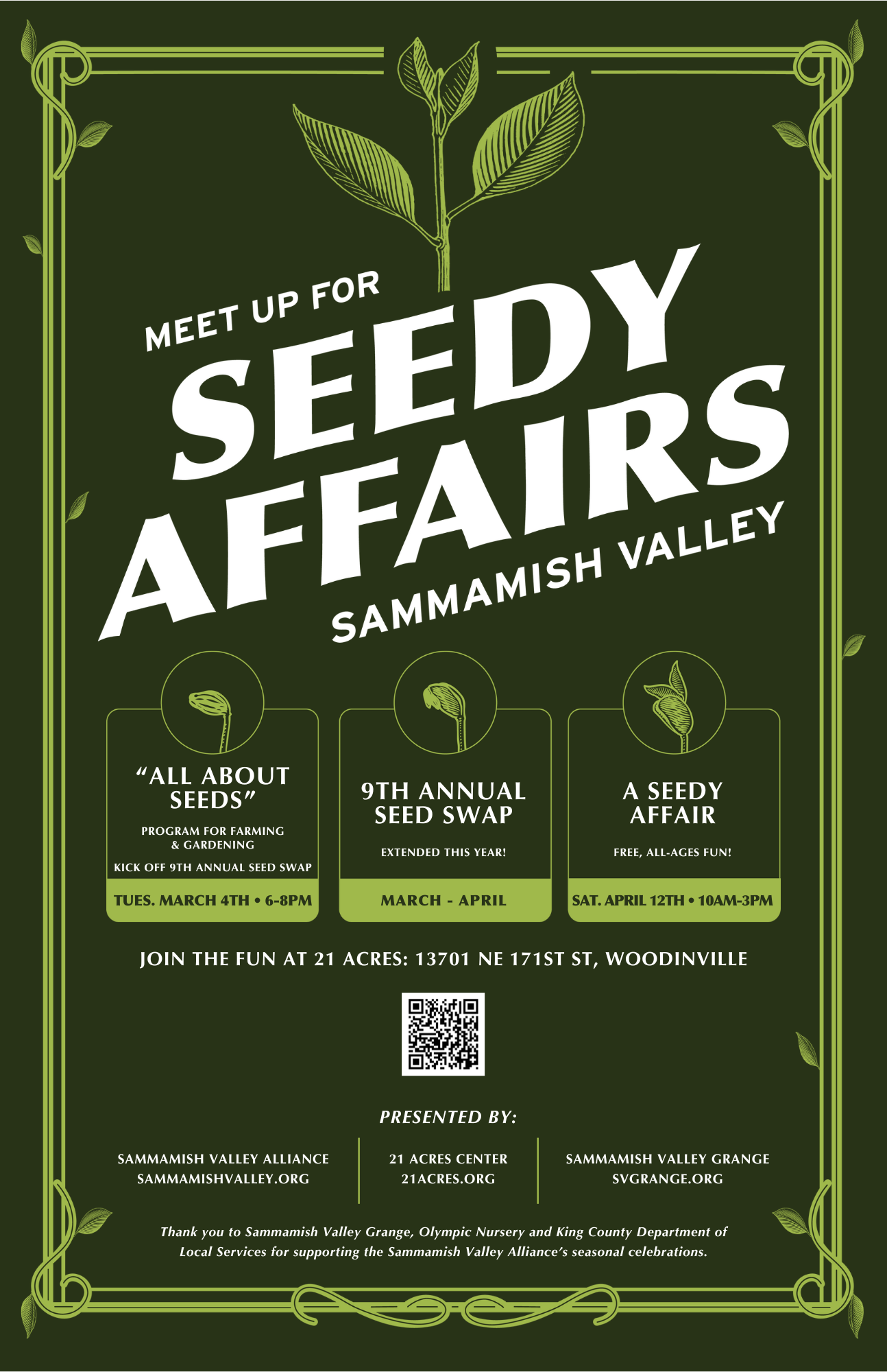 Presented by partners: Sammamish Valley Alliance, Sammamish Valley Grange and 21 Acres Center.